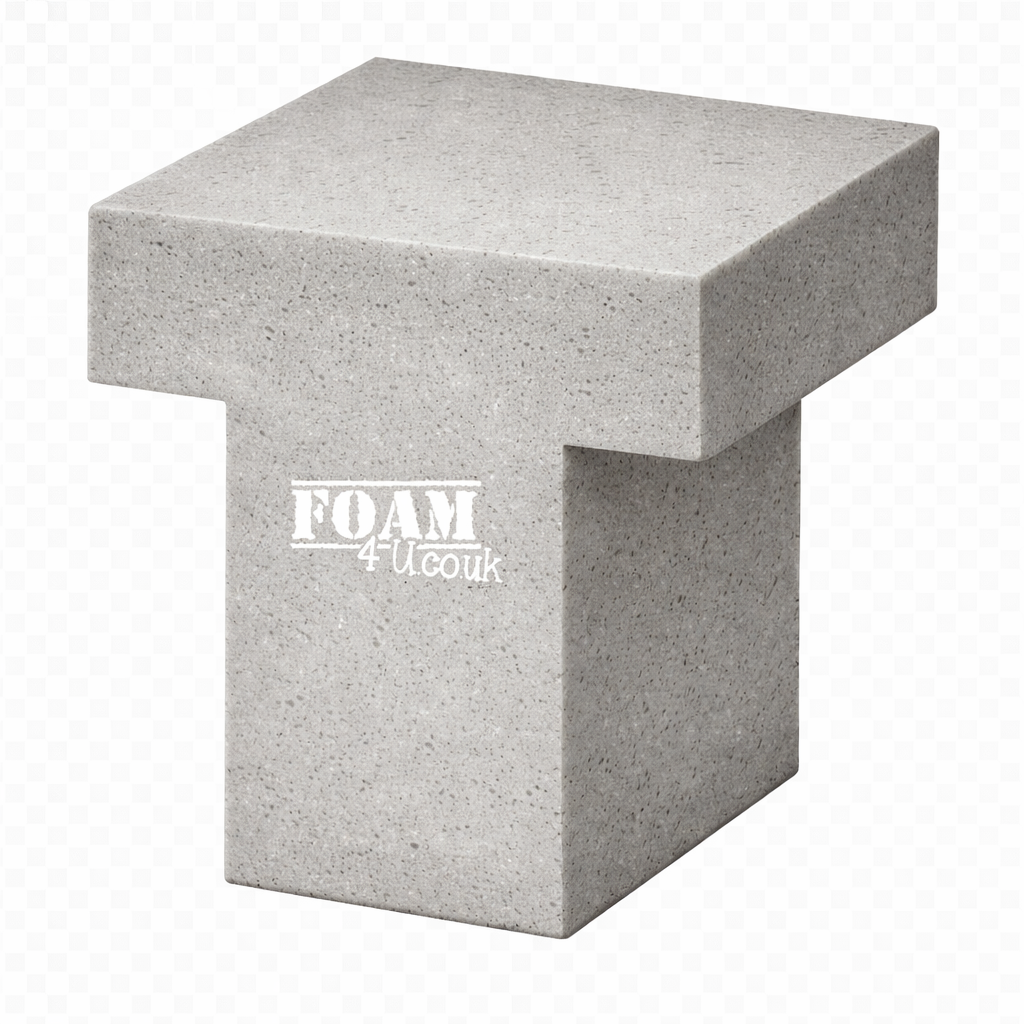 Our T shape latex foam cut to size option is designed for applications where a standard rectangle or L-shape wonβt work. This profile allows a central extension or stem to connect seamlessly with a wider section, creating a continuous and practical foam layout.